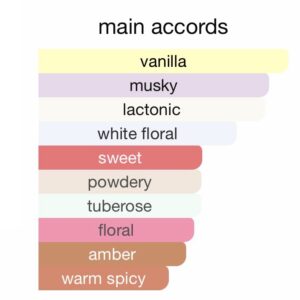A soft lactonic white floral fragrance inspired by mythical unicorns swanning in gardens resplendent in white flowers. A soft milky accord appears in the opening of the fragrance. As the fragrance develops, musky notes and white florals (jasmine, tuberose) combine with the gourmand opening giving the composition a more rounded character.